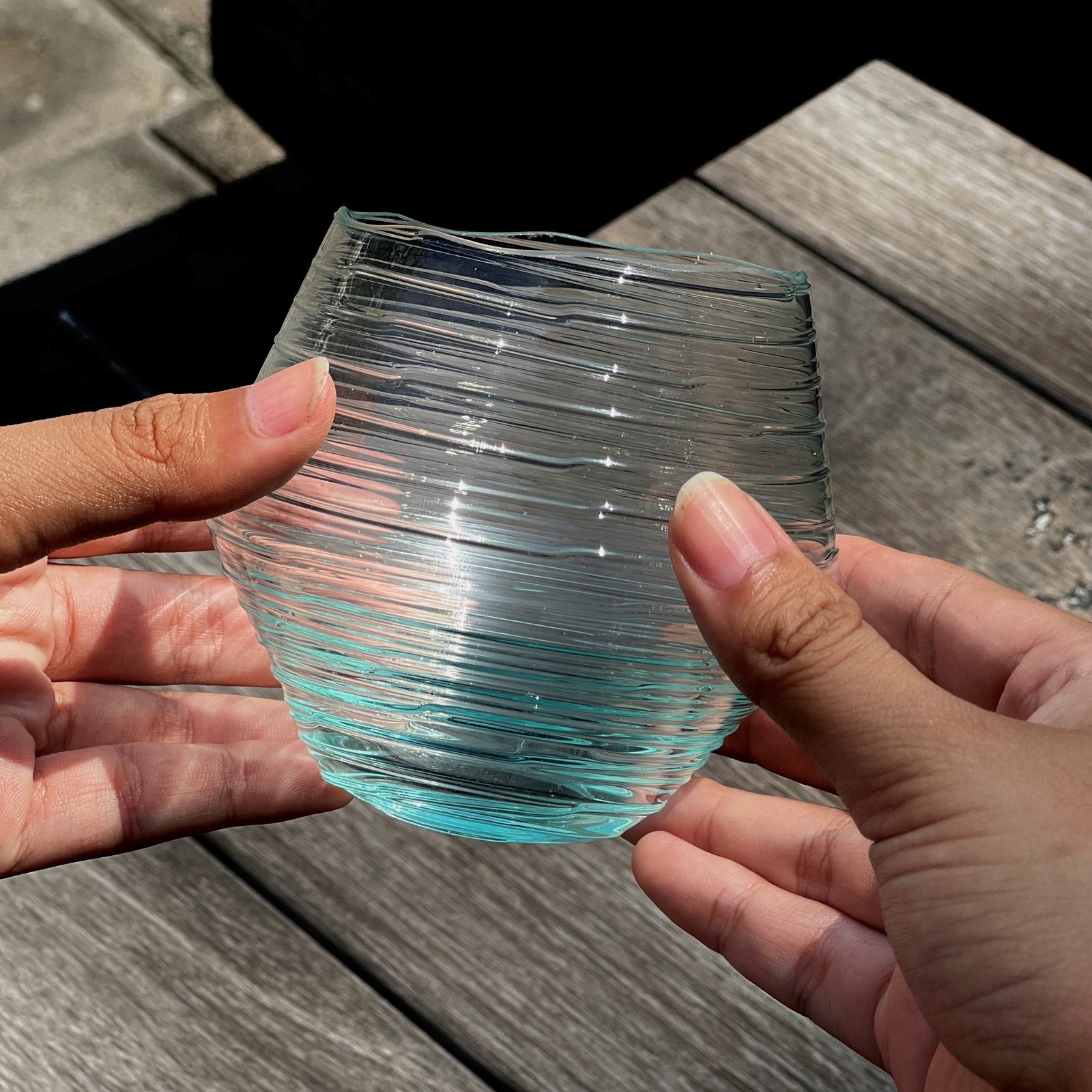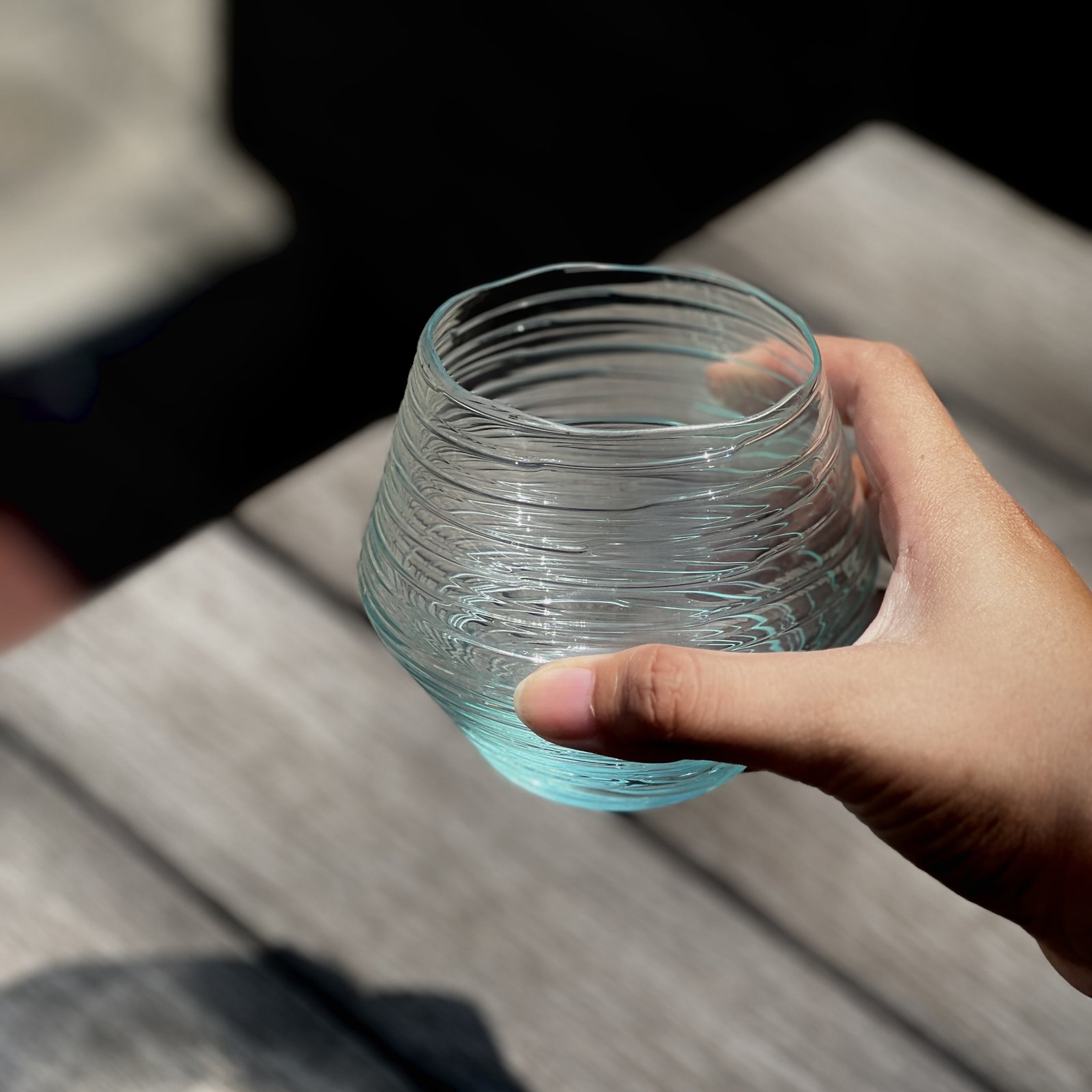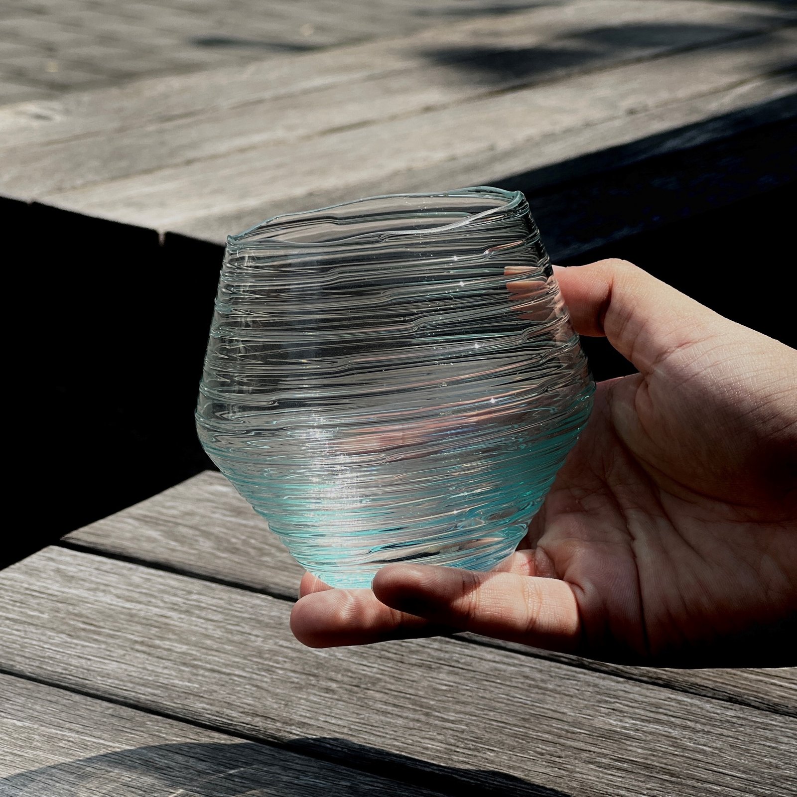 Handmade Wave whiskey glass, where the body is gracefully adorned